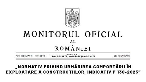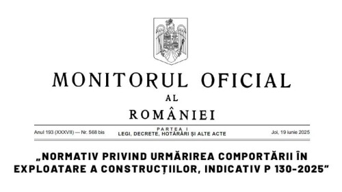 În data de 19 iunie 2025, a fost publicat în Monitorul Oficial al României, Partea I, nr 568 bis, Ordinul ministrului dezvoltării, lucrărilor publice și administrației nr 770/2025, privind aprobarea reglementării tehnice „Normativ privind urmărirea comportării în exploatare a construcțiilor, indicativ P130-2025”.